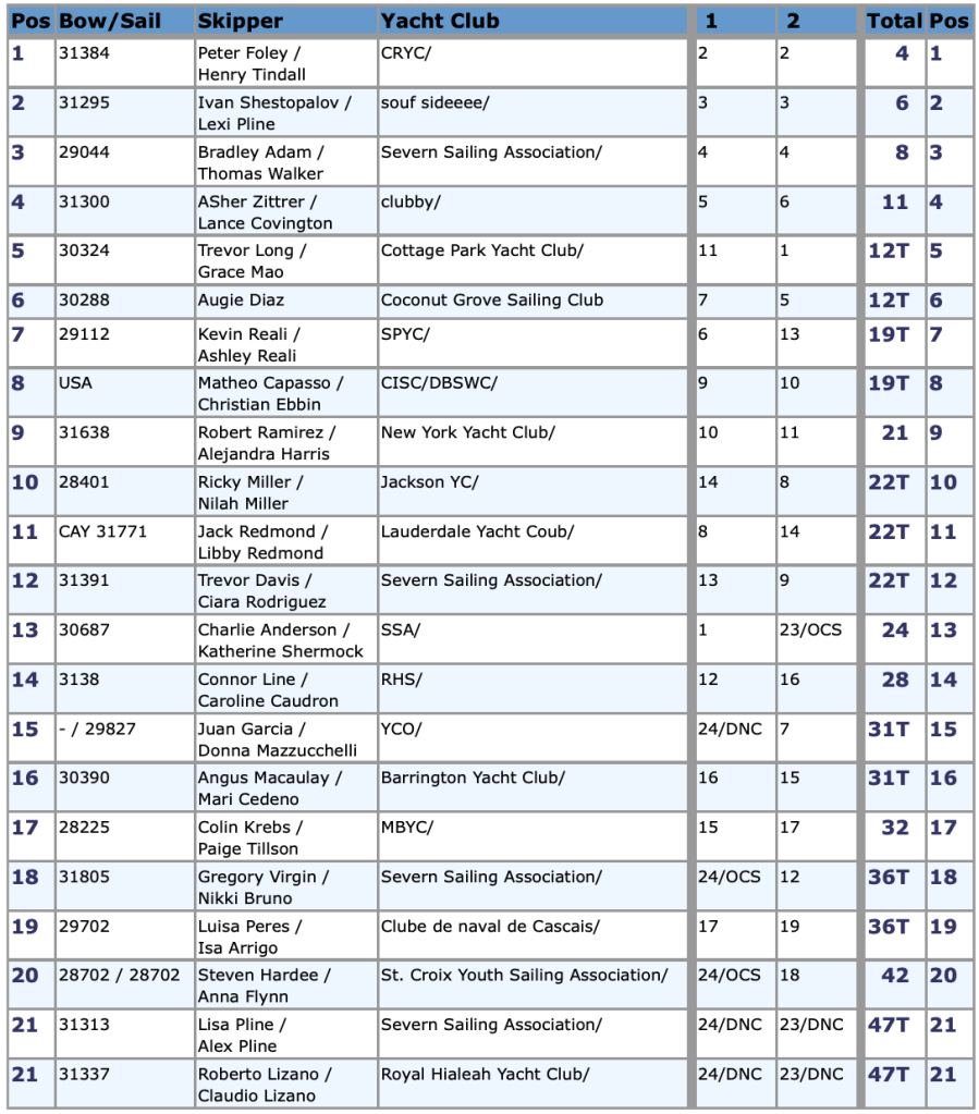 Miami, FL, USA, December 29, 2024. Results after 2 races: